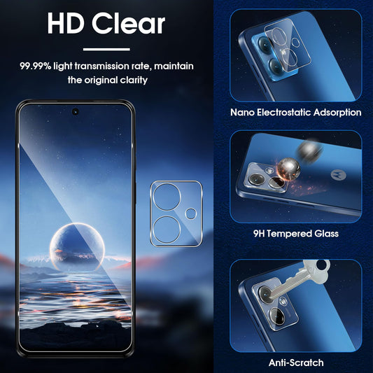 Lutree 2+2 Pezzi Pellicola Protettiva per Motorola Moto G14 Vetro Temperato + Fotocamera Pellicola, Durezza 9H Anti-Graffio Senza Bolle Pellicola Protettiva Protezione Schermo-trasparent