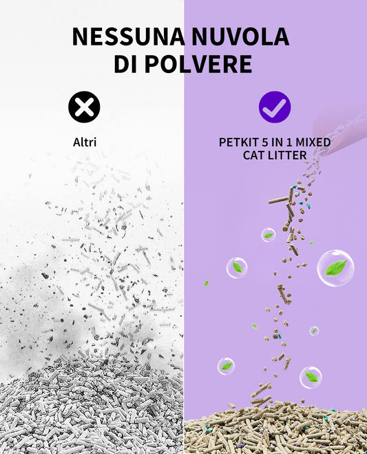 PETKIT 5 in 1 Lettiera per Gatti Mista - Confezione da 4, Lavabile, Inodore, Carbone Attivo, Ultra Assorbente e ad Asciugatura Rapida(quattro borse)