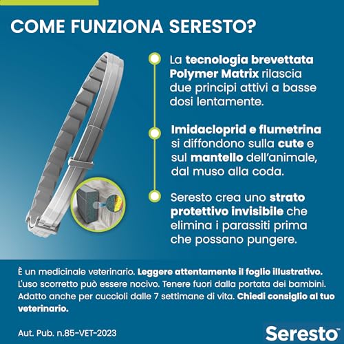 Elanco Seresto Collare antiparassitario, Per cani oltre 8 kg, Elimina pulci, zecche, pidocchi e protegge dal rischio di trasmissione, Della leishmaniosi fino a 8 mesi, 1 pezzo